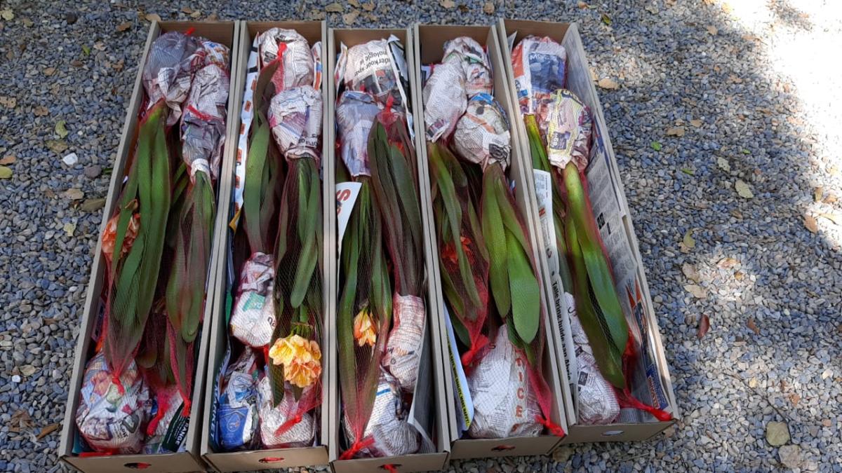 2. Bulbs are packed in brown paper bags to keep them dry.
