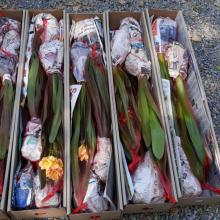 1. Bulbous plants are washed with leaves and roots trimmed for packing.