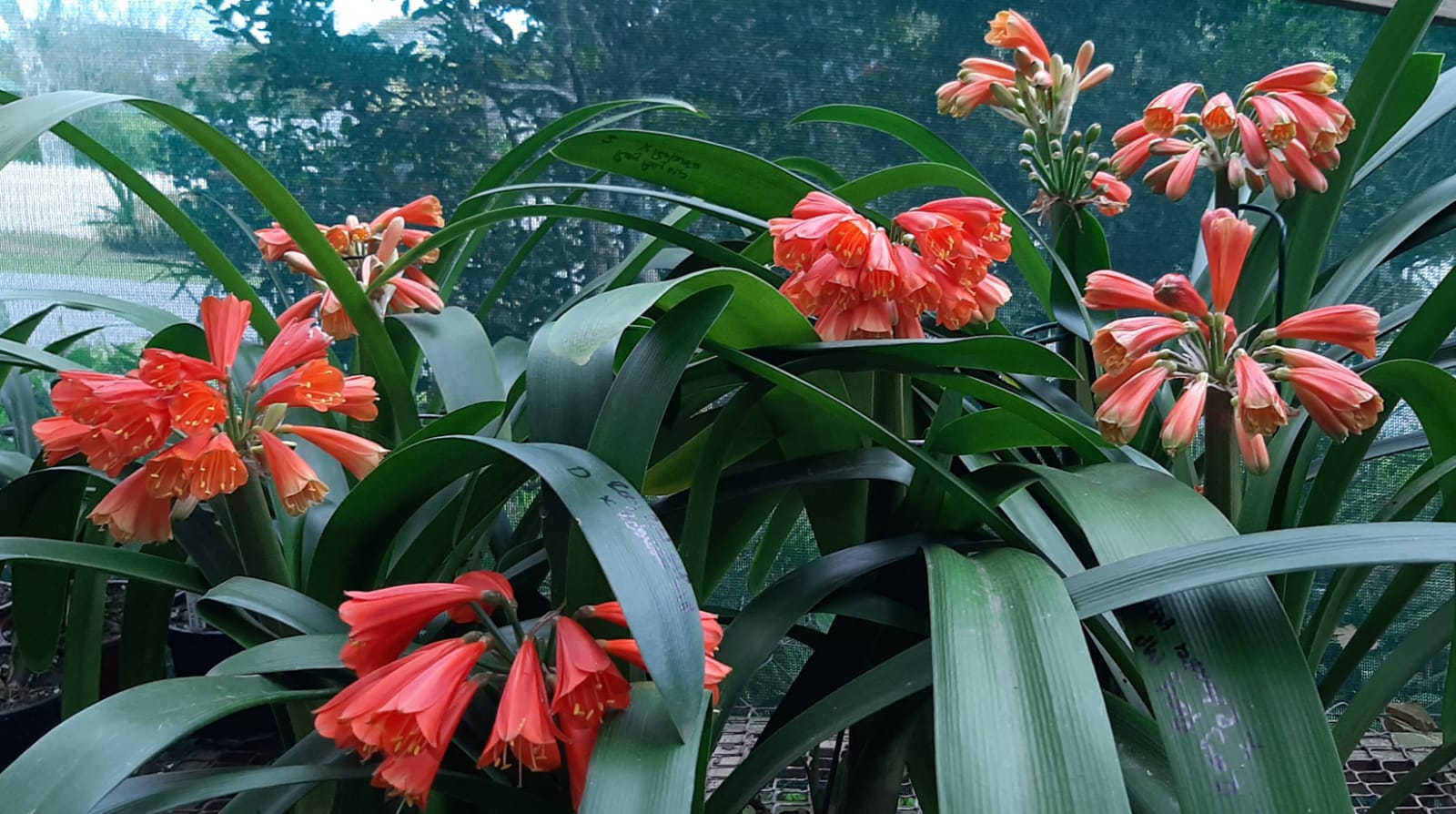Handsome plant with lovely large orange flowers and a white throat. Flowered Sept.2022