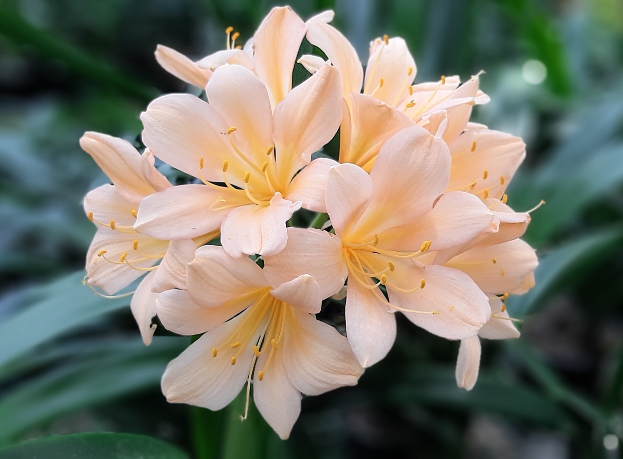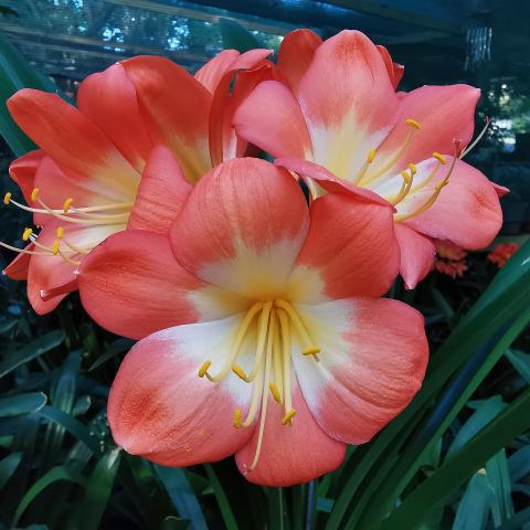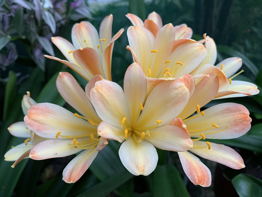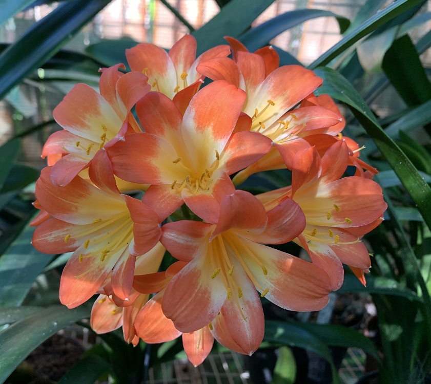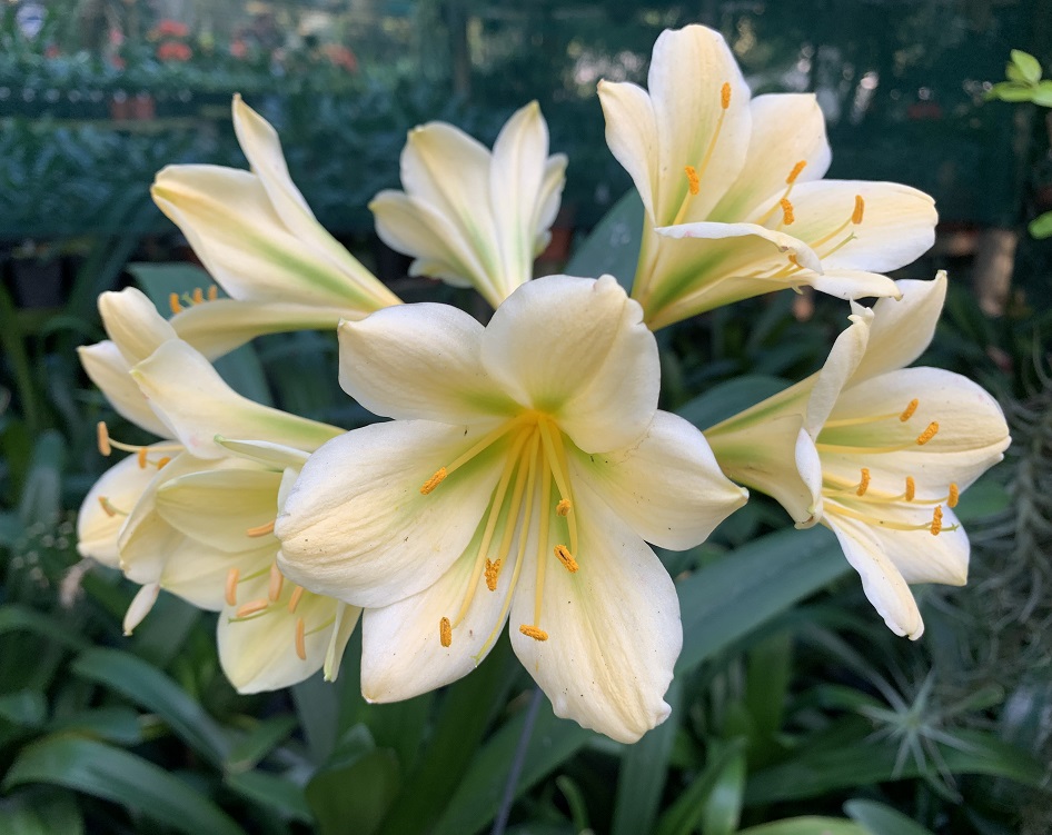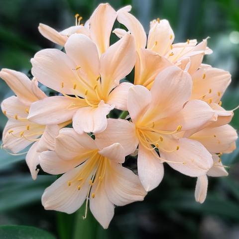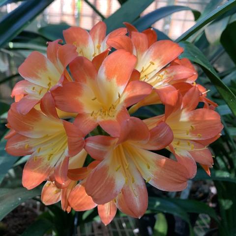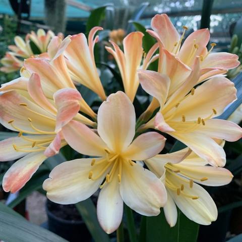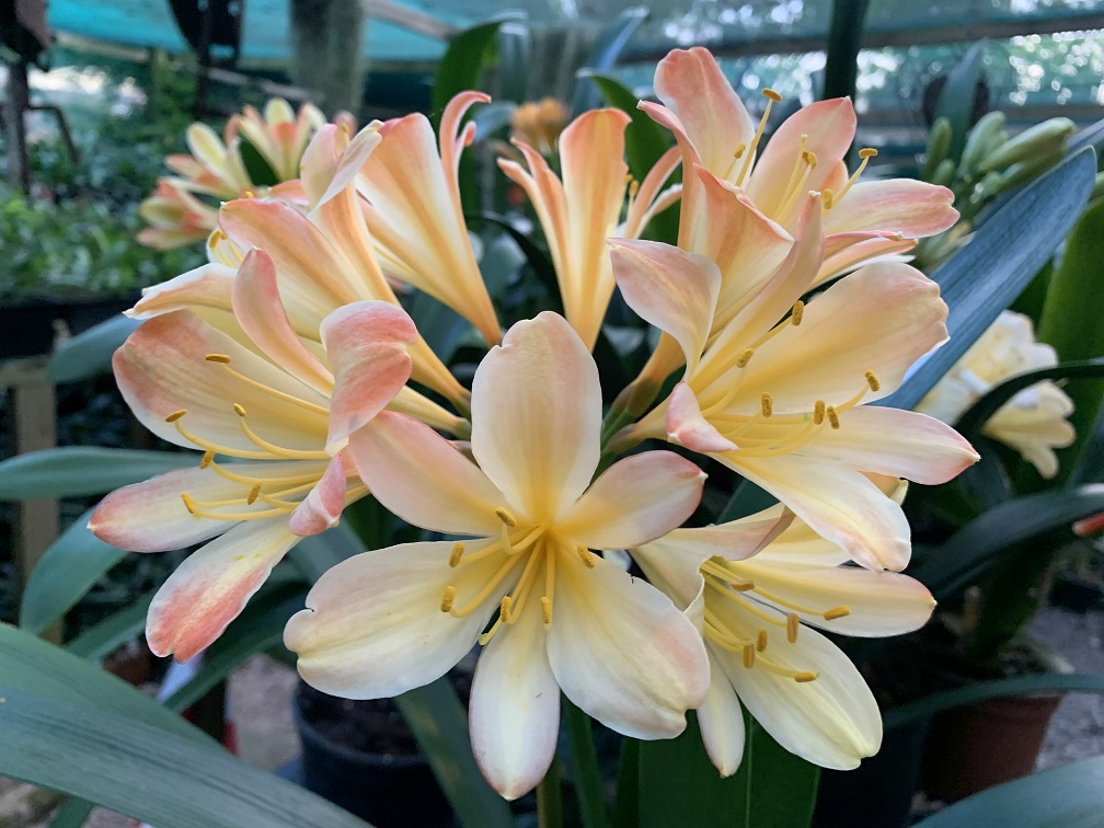 One of the original Clivia Specie types. The flowering season is from May to July, with some plants already setting seed while others are still in bud. The berries with one or two large seeds ripen the following winter, about 12-15 months after pollination. Colours range from pastel to pink with green skirts. Lovely colour in the garden in winter.