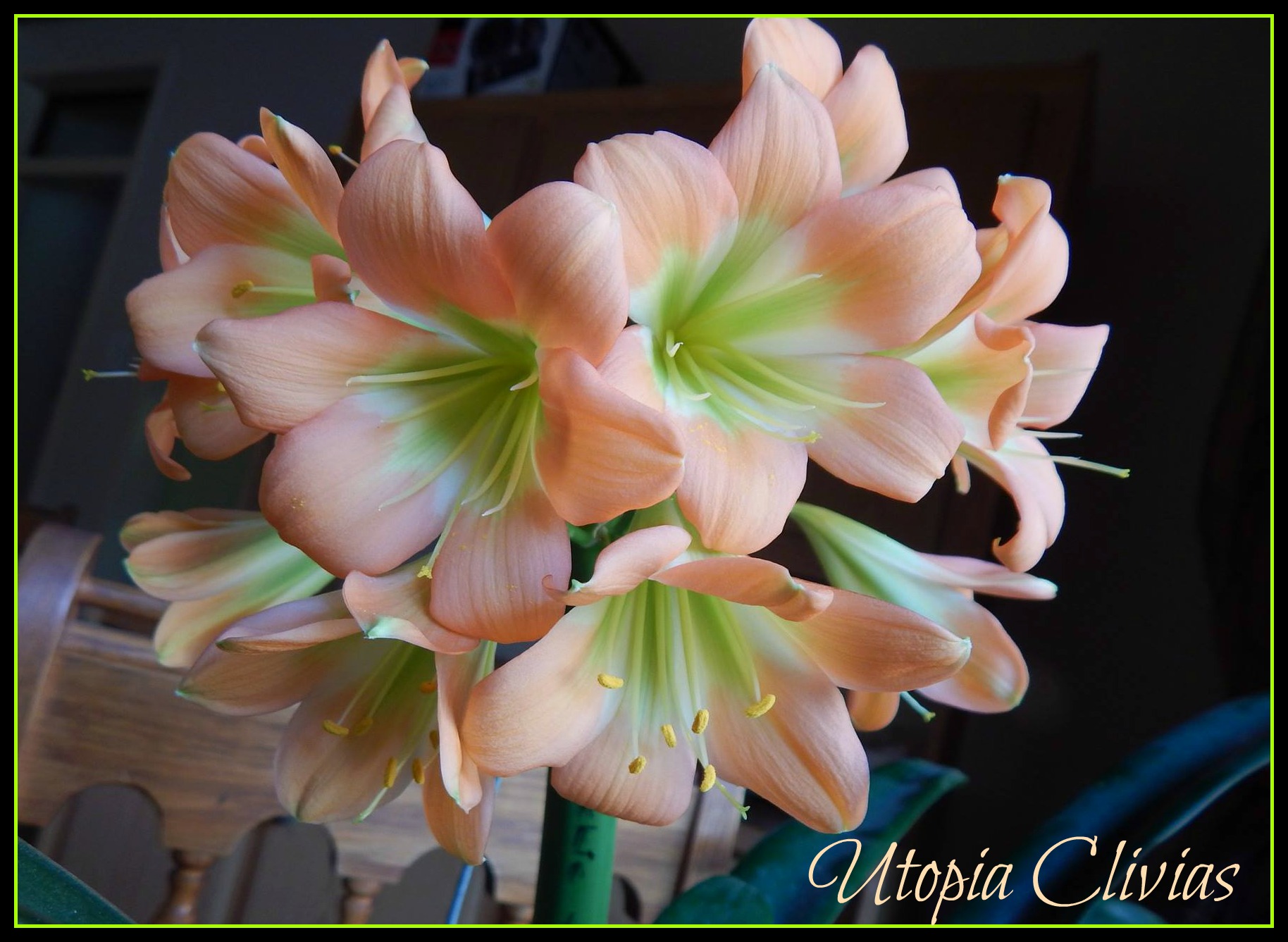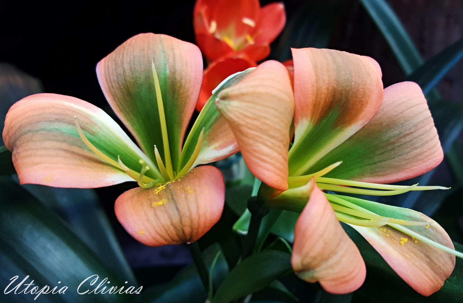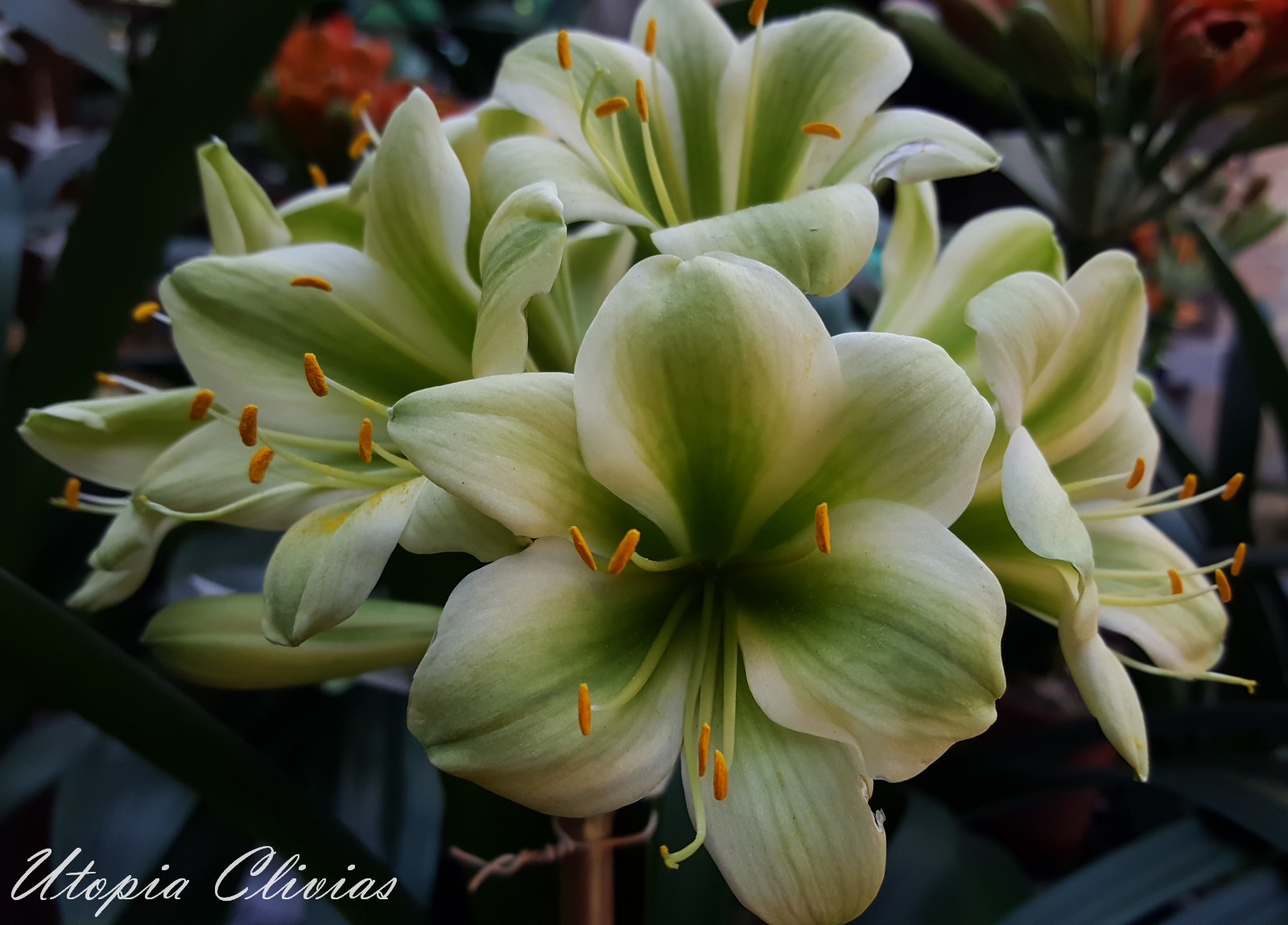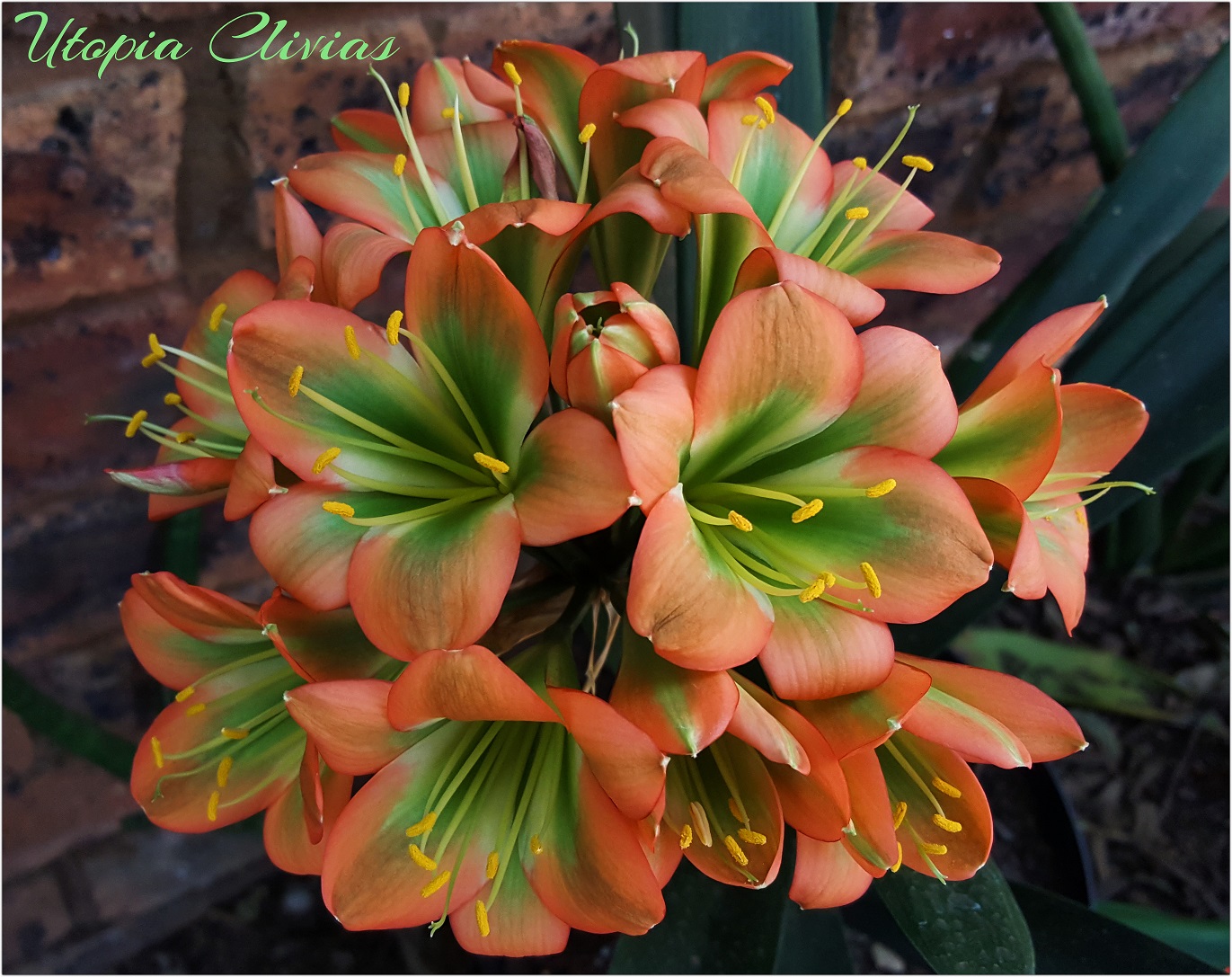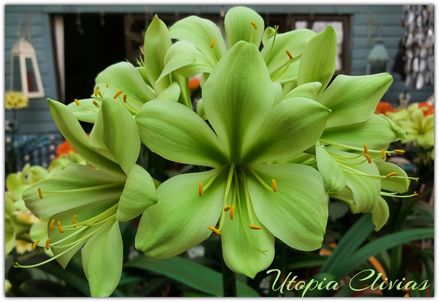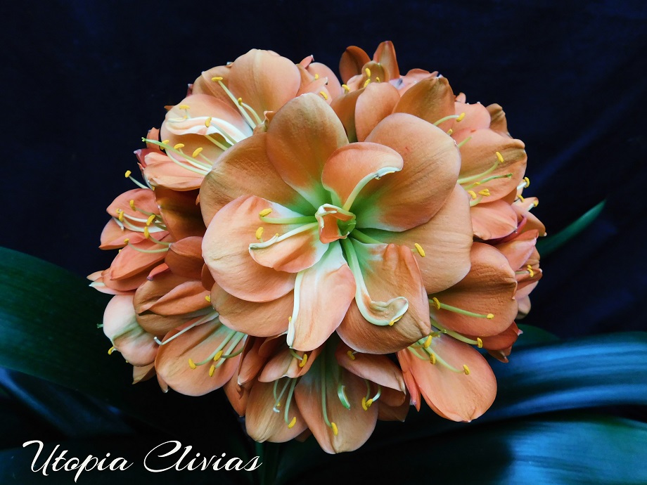 Jungle Fire was bred out of 608 B. It was Best on Show at Hermanus Clivia Show in 2017. This cross is a first step towards versi-colour bronzes with green centers on a good umbel. Both parent plants have good umbels.