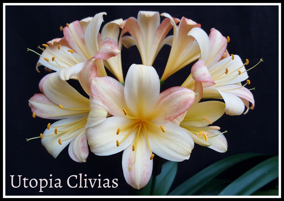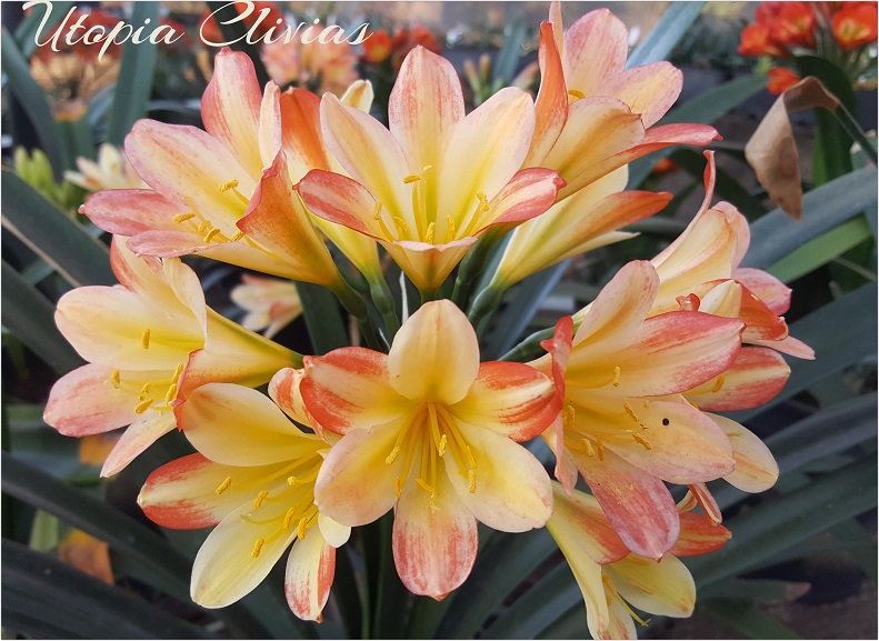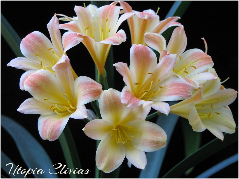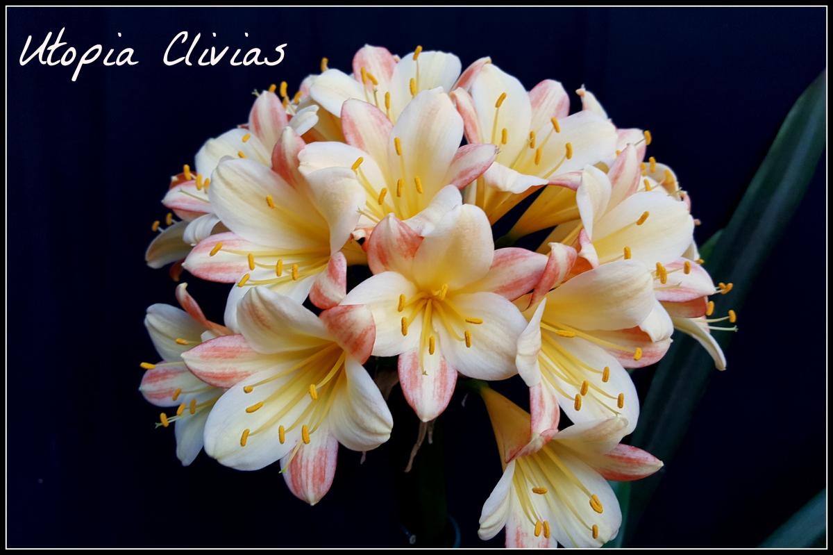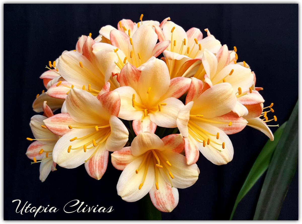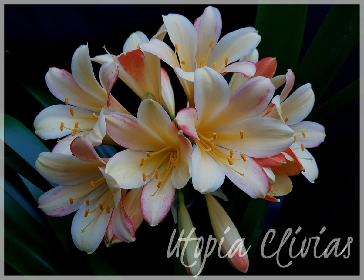 Lynn Janish Parfait - Registered Cultivar: This selection was made by Lyn Janisch in KZN. The plant was found in her garden amongst the orange Clivia miniata. It produces a full umbel of yellow flowers that have tints of pink. As the flowers open the pink becomes darker in sufficient light so that the umbel is a mixture of colours, hence the name. There is a small notch in the tip of many petals. It is a good grower that offsets well. Flower count is approx 20 flowers per umbel.