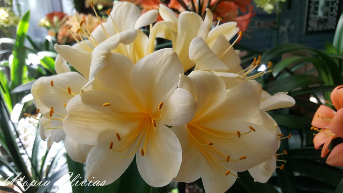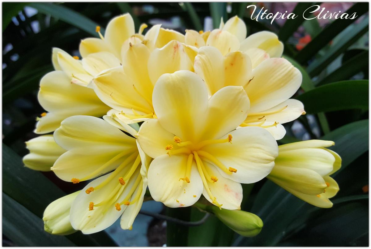 Although rare a few years ago, yellow clivias are now bred by hundreds of growers around the world. Yellows come in a variety of shapes and a variety of shades from light cream to almost butter yellow. We select and breed with only my best yellows, choosing plants with large umbels, full round petals and good flower count. Our collection includes Vico Yellows, Nakamura Yellows and group 2 yellows such as the Natal Yellow. Yellows are divided into group 1 and group 2 yellows of which group 1 yellows breed true to type yellow plants. Group 2 yellows are split for orange/pastel. The yellows with green centres have become very popular and I have several of these that I use for breeding. Our latest import is a TK original yellow with a green throat from Shige in Japan.This is also a group 2 yellow, but very good for breeding green throated plants. This year a beautiful tulip yellow flowered in my nursery and true tulip yellows are still rare. I am hoping to use this one extensively in my breeding program. I am also aiming to breed shorter broader leaf yellows to give a compact yellow plant. I have several of these seedlings and young plants growing on in my nursery. I was able to obtain some yellow Daruma pollen last year and did several crosses with it on my group I yellows. Now is the 4 year wait to see what might come of those seeds. I have bred several top yellows of which some of them have won top awards for first flowering yellow seedlings at major clivia shows. Have a look at our show gallery to see some of these beauties.